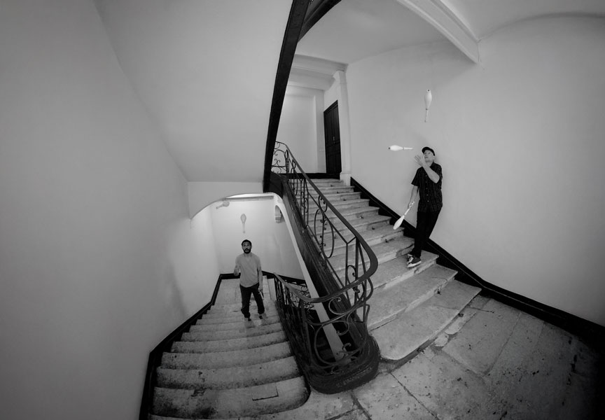 En s’inspirant du funk et du Jazz militant des années 70, au groove underground des années 90, les deux jongleurs tissent un univers musical dense et organique qui invite le spectateur à ressentir la puissance de l’incarnation, à célébrer la spontanéité, l’improvisation et la créativité.